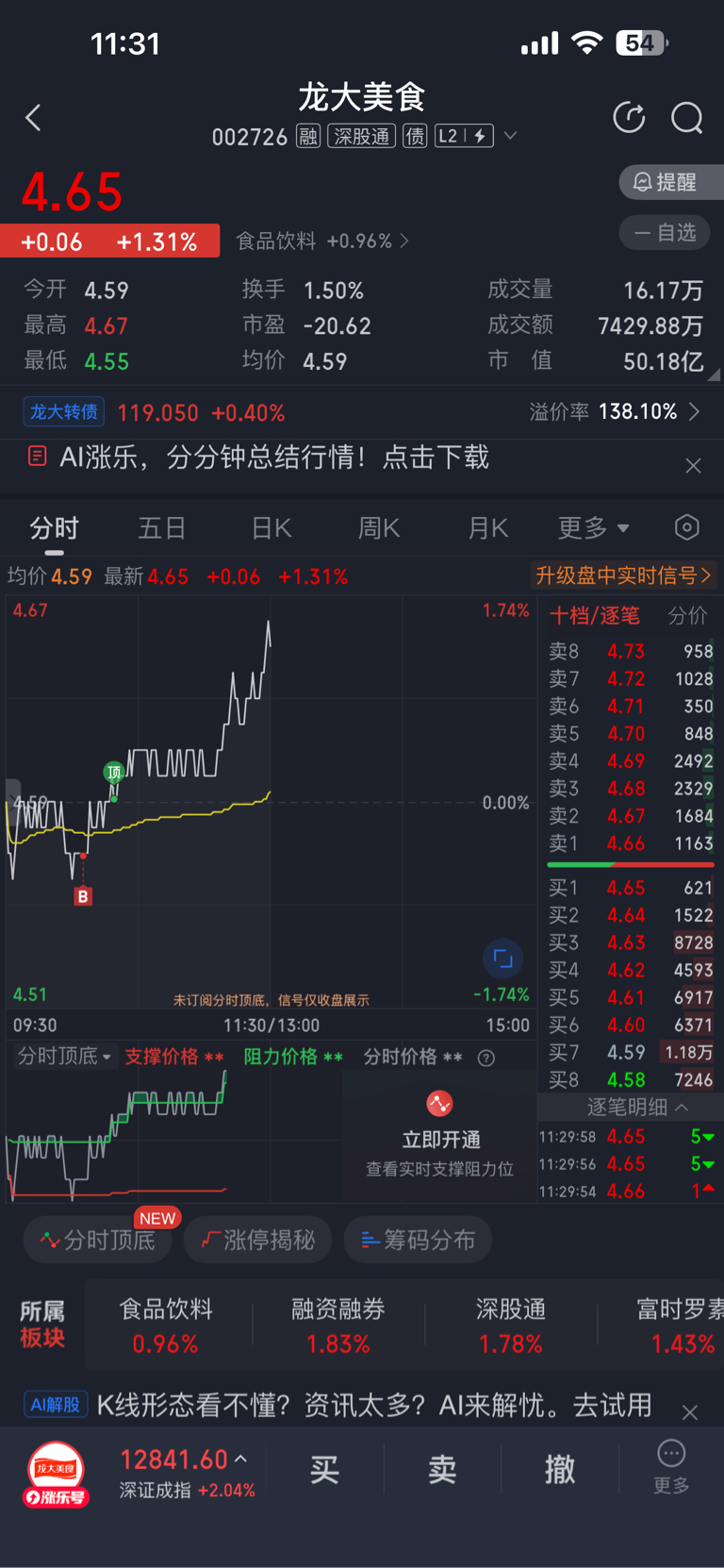 $龙大美食(SZ002726)$ 今天没有破昨天的4.55,不出意外,这就是底,加上年跌幅有40多点,已经属于严重超跌了,所以今天正式建仓,但是不能掉以轻心,都快年底了,现在全国猪肉并没有出现上涨态势,好多还在下降,像这个票要想大涨,必须要政策,还有就是国内大型养殖企业抱团,控制出栏量,来抬高猪肉价,个个拼命往外卖,只会自相残杀。
