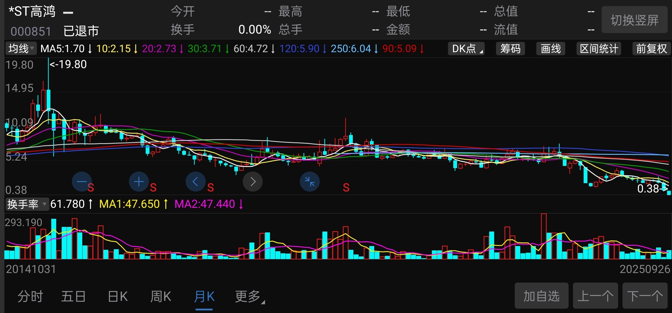 持有一只股票,十年不动会怎样?周期会轮转,会有月线图大牛上涨。那还得看主力,主力不给力,就算持有十年,也可能面临退市。