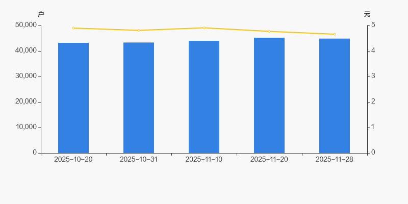 2025年10月20日至今,公司股东户数有所增长,区间涨幅为3.86%。2025年10月20日至2025年11月28日区间股价下降4.90%。