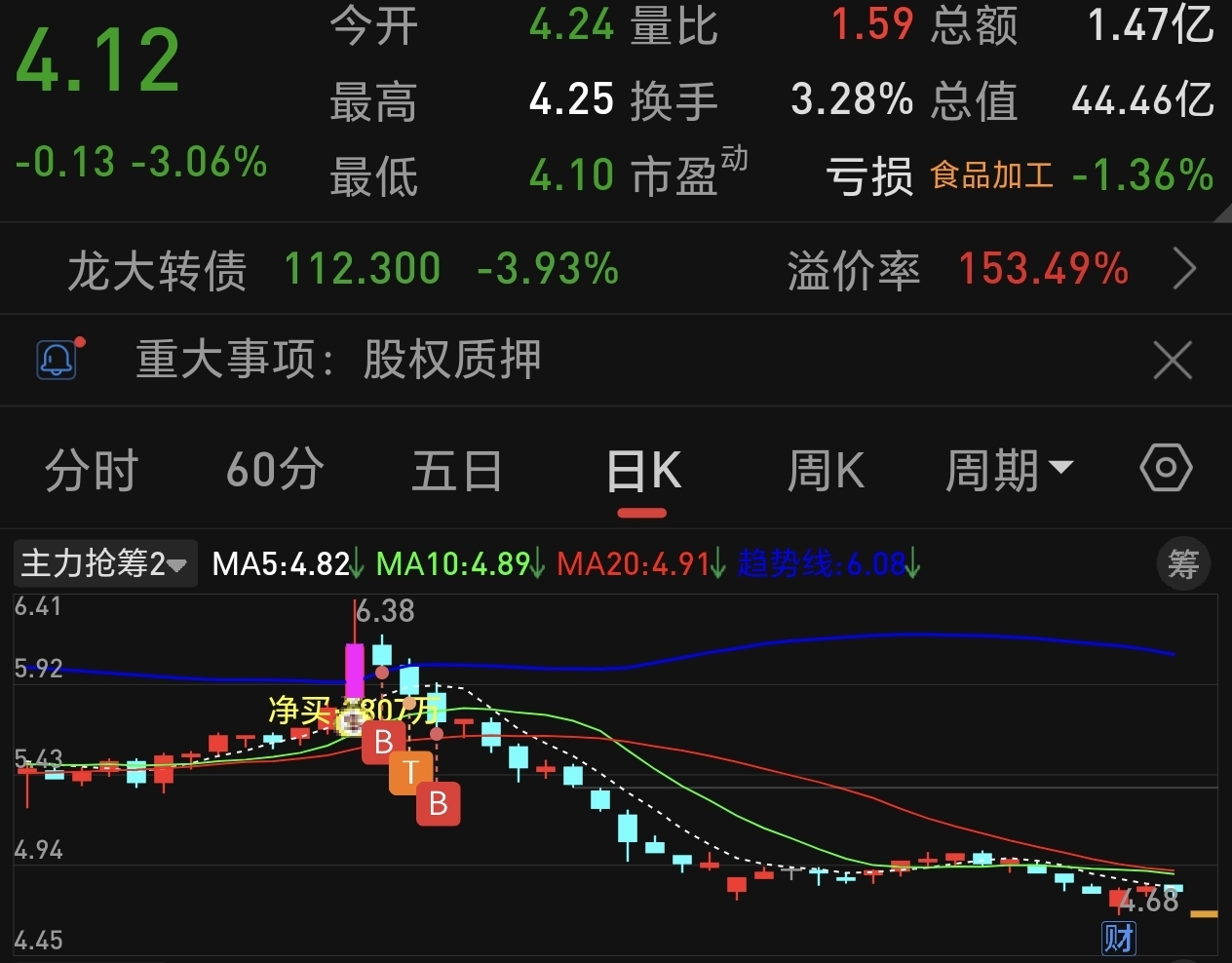 $龙大美食(SZ002726)$ 龙大股东们,我对不起你们
