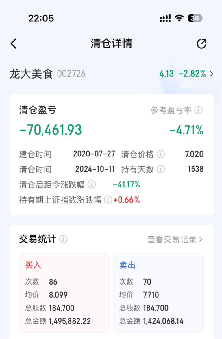 $龙大美食(SZ002726)$ 我唱空那是因为我真实买过这个票然后几年都解不了套所以想让更多人远离这个票。还好只是半仓当时其他票赚的都亏在这里了要是一直耗在这里等反弹又tm要亏40几个点…说我是拖唱空赚钱的我能在龙大赚钱我都要请你吃饭…大股东没钱无法作为他资金不缓解真的是只有易主,但是大股东又舍不得放弃龙大所以现在只能阴跌