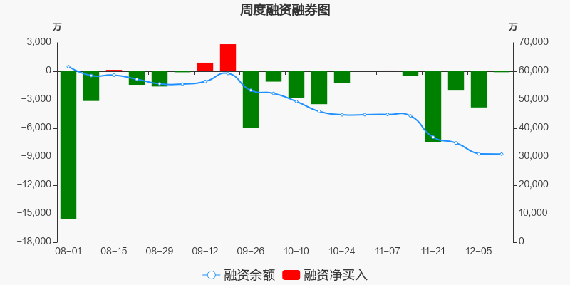 龙大美食本周(2025/12/08-2025/12/12)累计跌幅达5.06%,截至12月12日最新股价报收4.13元。从增量上来看,12月8日至12月11日融资买入交易规模3422.42万元,融资偿还规模3520.38万元,期内融资净偿还97.96万元。从存量上来看,截止12月14日,龙大美食融资融券余额3.1亿元,其中融资余额规模3.09亿元,融券余额规模81.69万元。