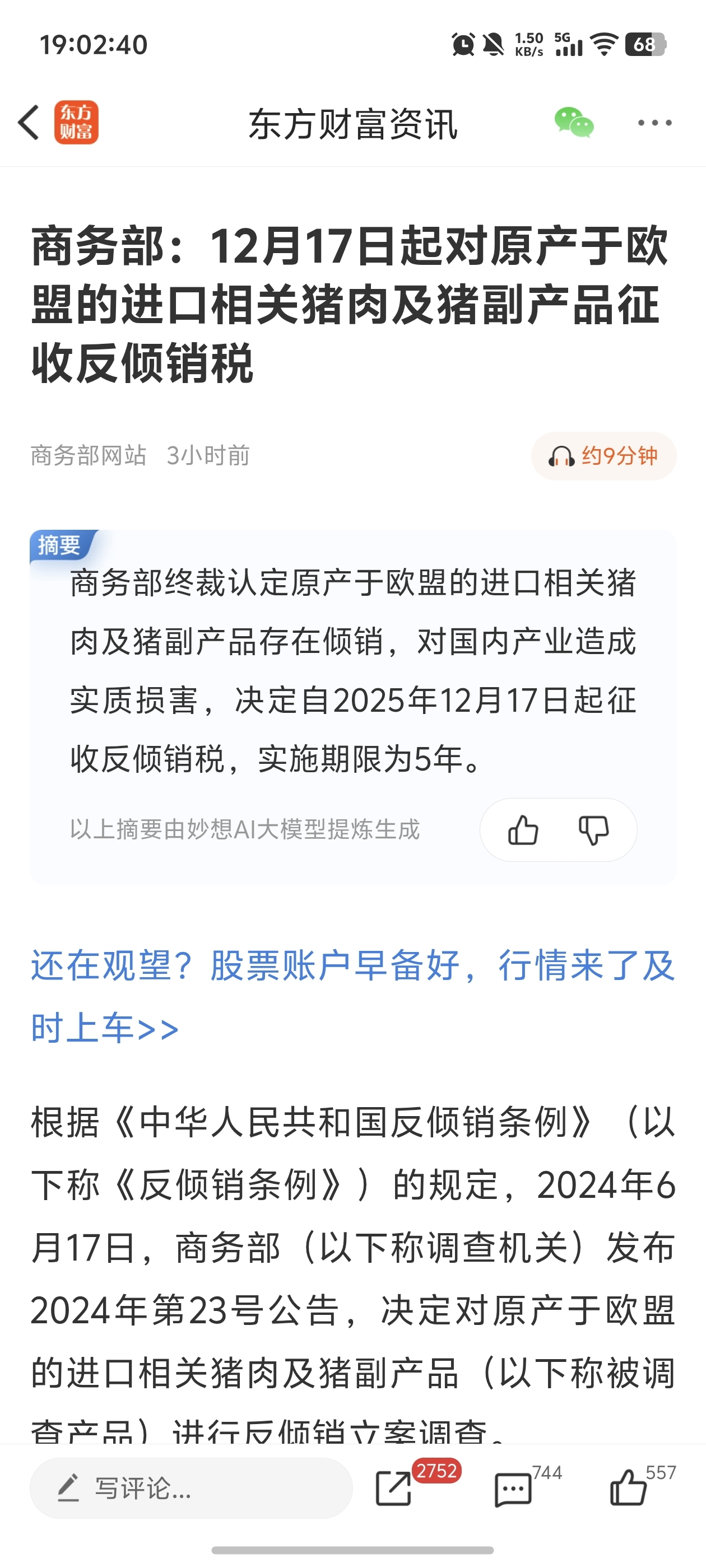 对原产于欧盟的进口相关猪肉及猪副产品征收反倾销税的实施期限自2025年12月17日起5年。