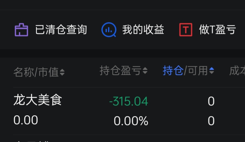 $龙大美食(SZ002726)$ 抄底一个月亏了300多块割肉了,今年第一只亏损离场的票,离开你不是怕你跌而是你个僵尸真难做T,今年18抄底跌倒13的票都让我做T做盈利了,你是真难做T4.6抄底最高亏几千到现在只亏300块知足了