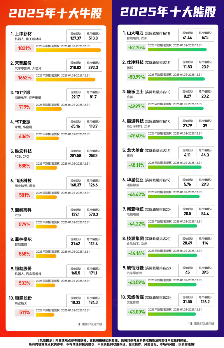 $龙大美食(SZ002726)$ 2025年十大牛股+十大熊股