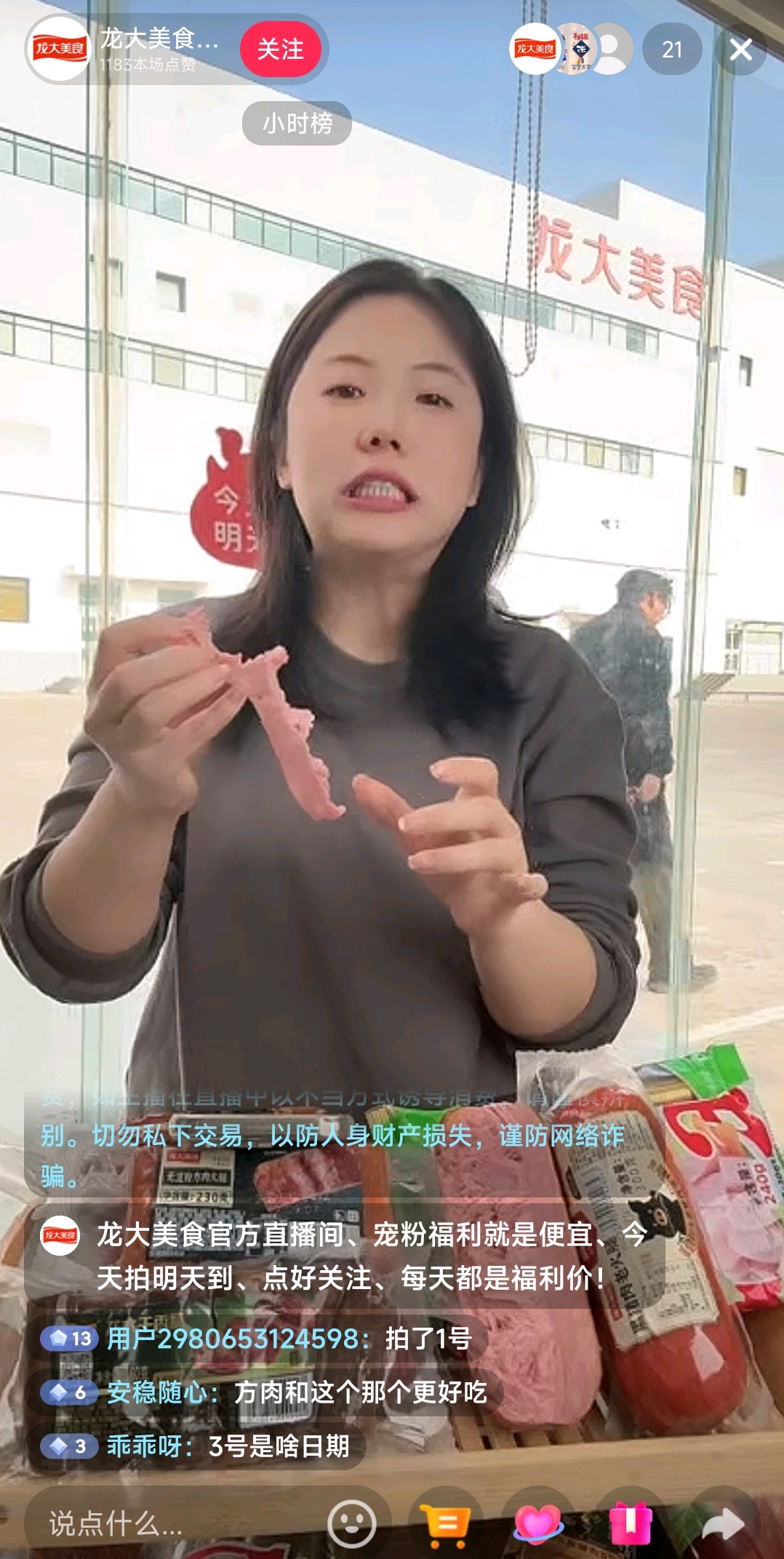 恶心的龙大员工又在直播,恶心的肉肠,谁会买呢?只有她们这样的猪,才会吃吧?