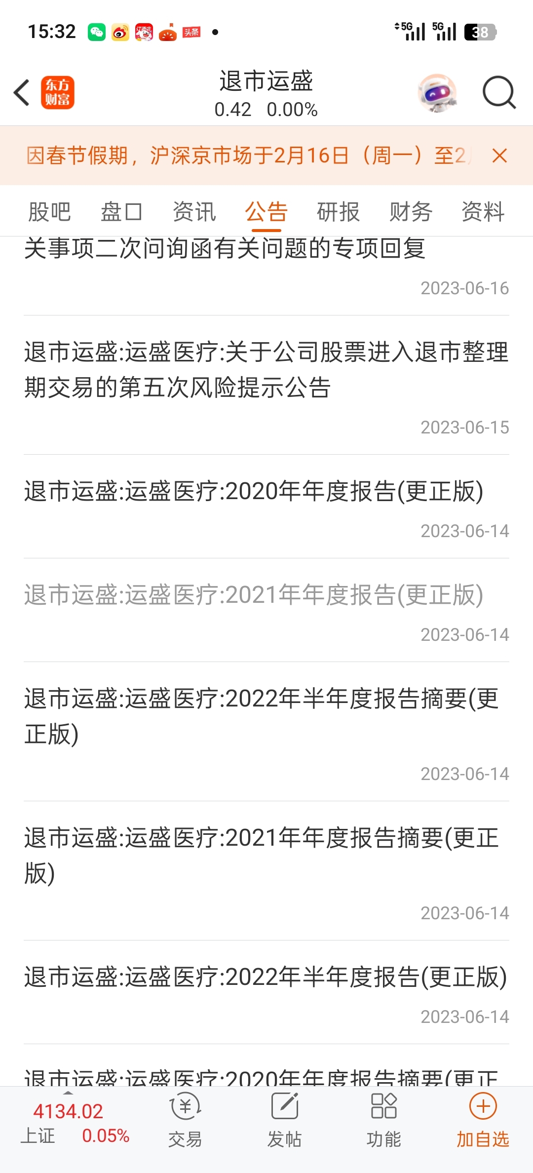 退市运盛医疗也是前期跟你玩财务更正。过了没长时间就突然戴帽。然后退市。这个肯定也