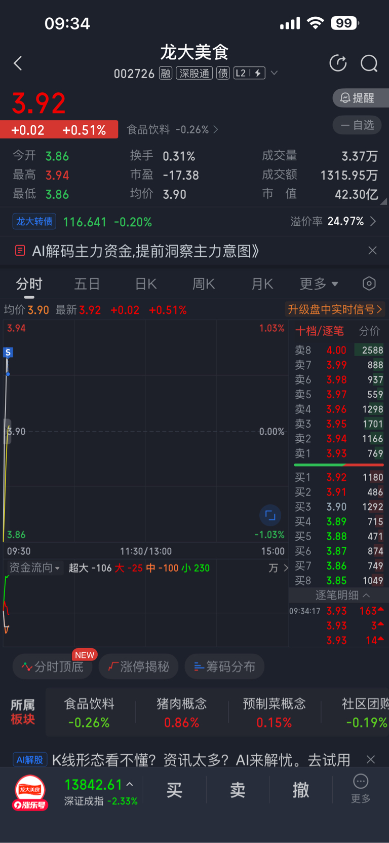$龙大美食(SZ002726)$ 上周五买的,挣五个点了撤退,这票拿在手上我心里一点都不踏实,今晚老美有戏看了,估计得熔断。