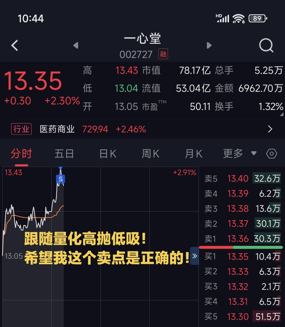 跟随量化高抛低吸!希望我这个卖点是正确的!