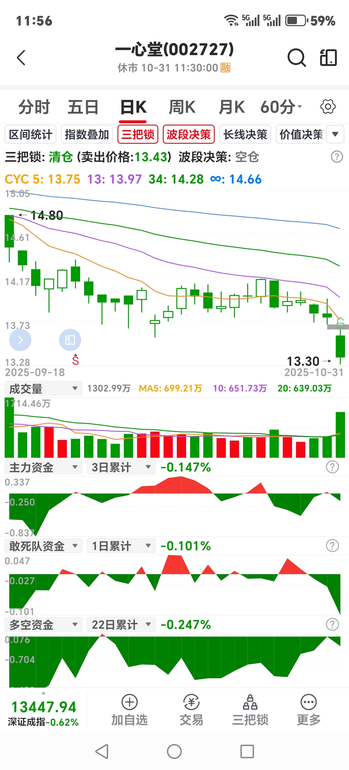 $一心堂(SZ002727)$ 今天放量下跌主力资金大逃亡