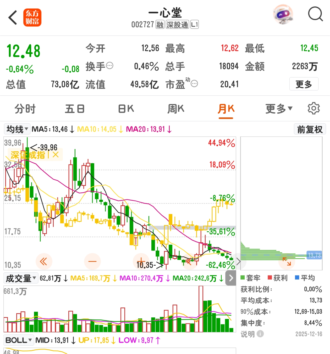 $一心堂(SZ002727)$ 获利比例0%,大A你最牛逼。