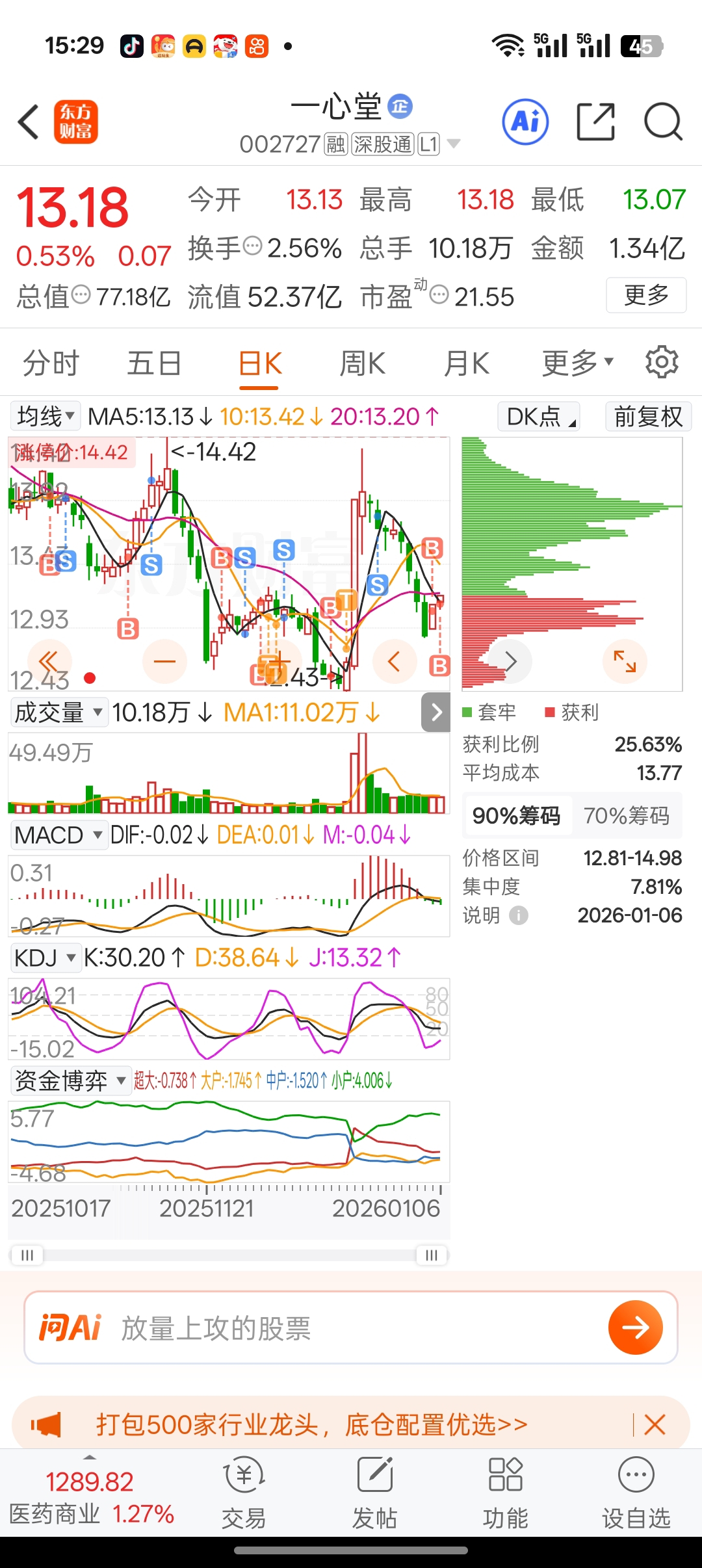$一心堂(SZ002727)$ 我回来了