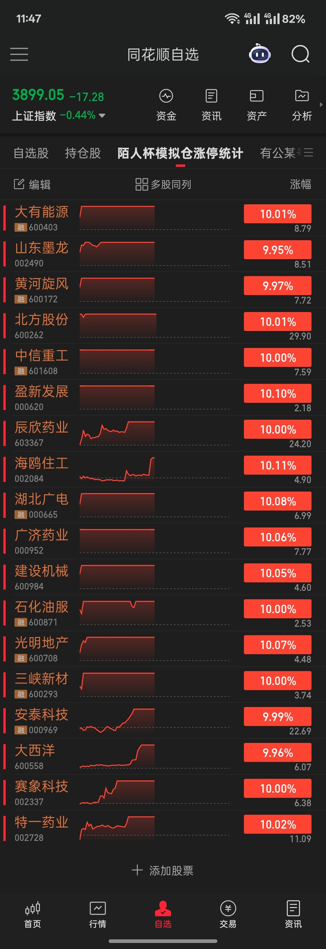 今天起来十点二十了,所以今天少,就买到16个涨停,其中10个还是连板……(有两个卖了又板了的$特一药业(SZ002728)$ $安泰科技(SZ000969)$ ,出现一个跌停跑不出去$华建集团(SH600629)$ 今天没有20厘米的)#深地经济或成新风口,概念股有哪些?# #CPO、PCB大反攻!行情空间有多大?# #黄金创12年来最大单日跌幅!什么信号?#