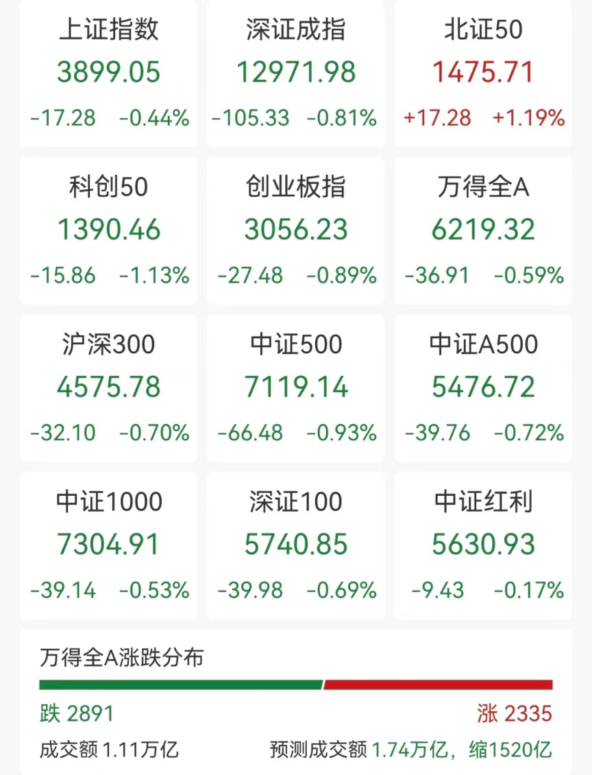 10月22日,大盘低开后缩量震荡,小微盘股表现活跃。截至午盘,上证指数跌0.44%,深证成指跌0.81%,创业板指跌0.89%,北证50涨1.19%。