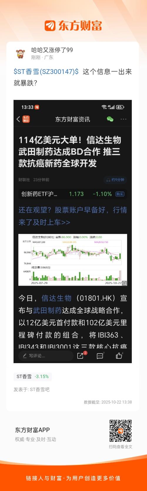 $ST香雪(SZ300147)$  这个信息一出来就暴跌?