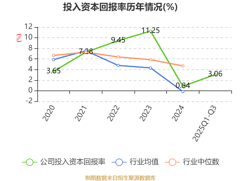 盈利能力方面, 2025年前三季度公司加权平均净资产收益率为3.65%,同比上升3.33个百分点。公司2025年前三季度投入资本回报率为3.06%,较上年同期上升3.04个百分点。