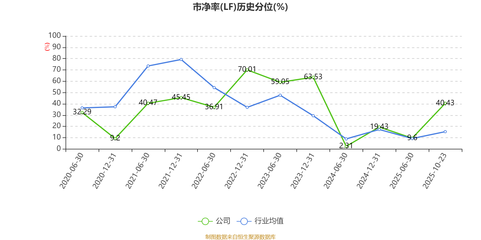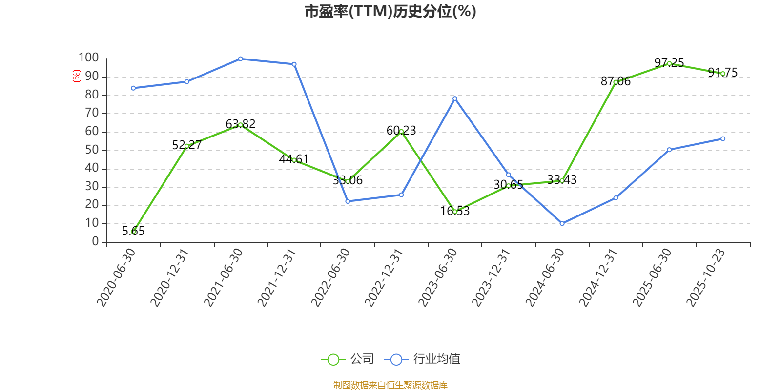 市盈率、市净率为负时,不显示当期分位数,会导致折线图中断。