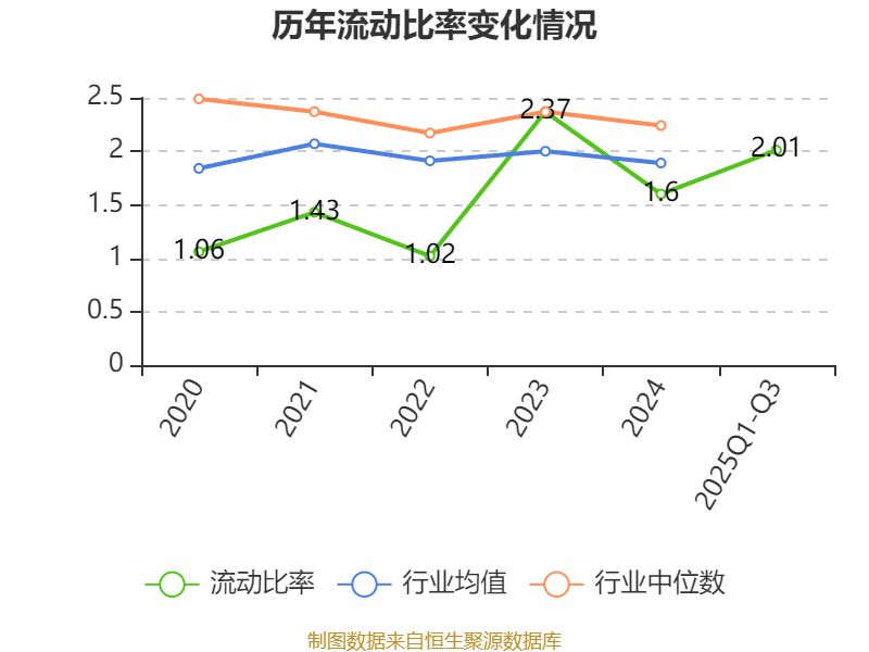 2025年前三季度,公司流动比率为2.01,速动比率为1.33。