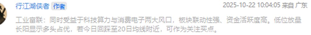 工业富联:AI算力主线+CPO+液冷服务器+工业互联网+苹果产业链等概念,前面低位十字星出现明显的止跌讯号,隔天走出一阳穿三线的突破形态,近两天没有继续冲高,而是缩量调整在短期均线附近稳住,今天沿前方长阳开盘价防守,低开回踩遇买盘接力还是有机会走出反弹修复,中线继续看涨。
