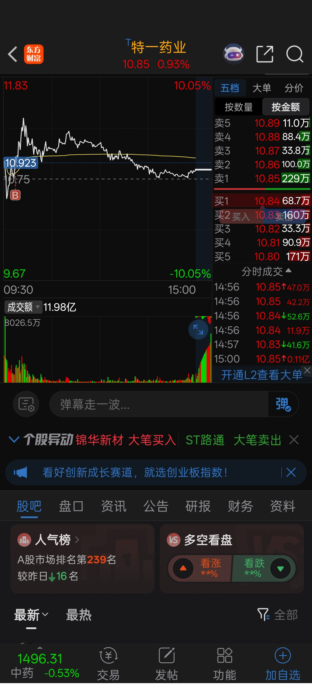 $特一药业(SZ002728)$ 我不信科技一直涨,科技走的是月线级别,涨一天跌两天,周一稍微一点资金流向中药,特一就是涨停,就算不涨也回调不是那么激烈,设了个止损,盈亏比还是很划算的