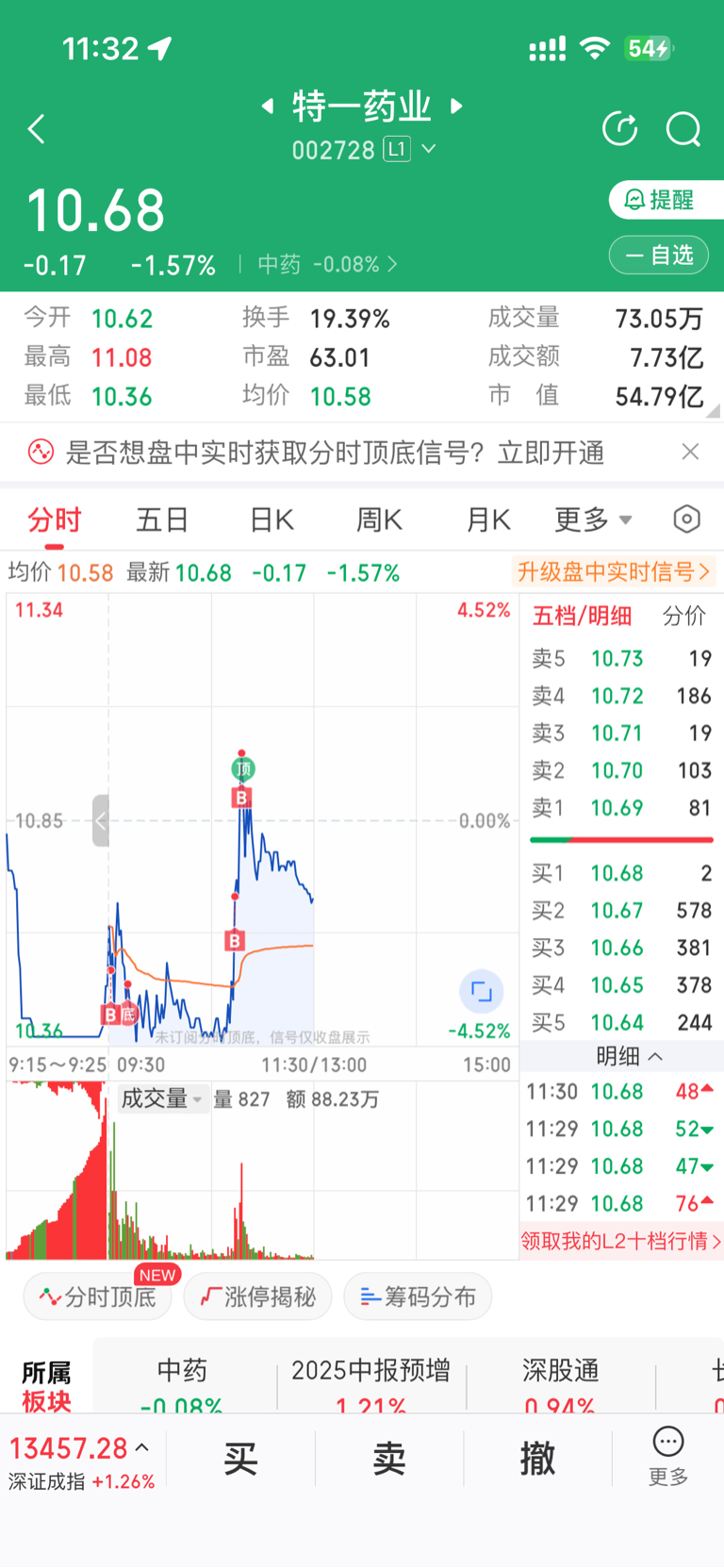 $特一药业(SZ002728)$ 我来支持一把,把我挂山顶?