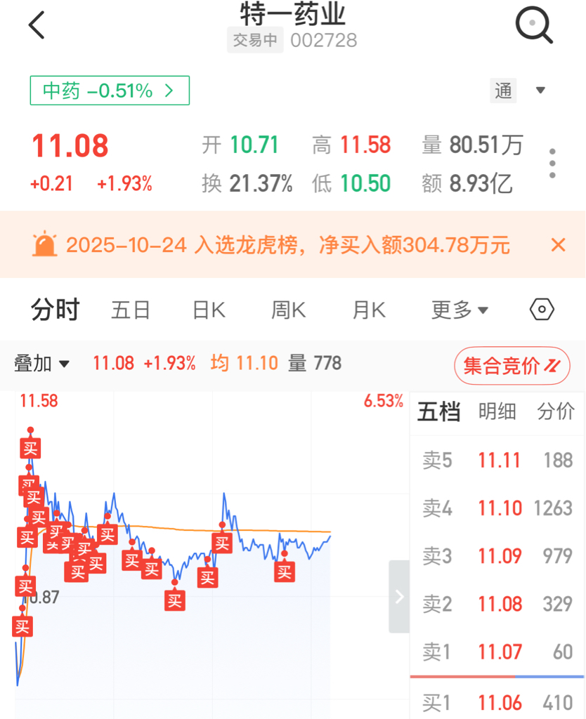 $特一药业(SZ002728)$ 我买股,只相信自己的判断,别人说话只做参考,中药板指连续跌了4天,连跌连涨皆不可持续,加上资金有调仓的需要,这就是我买特一药业的理由,中药目前趋势量能最好就是他,中药板块反弹,他大概率就是龙头,看看尾盘有没人抢筹码