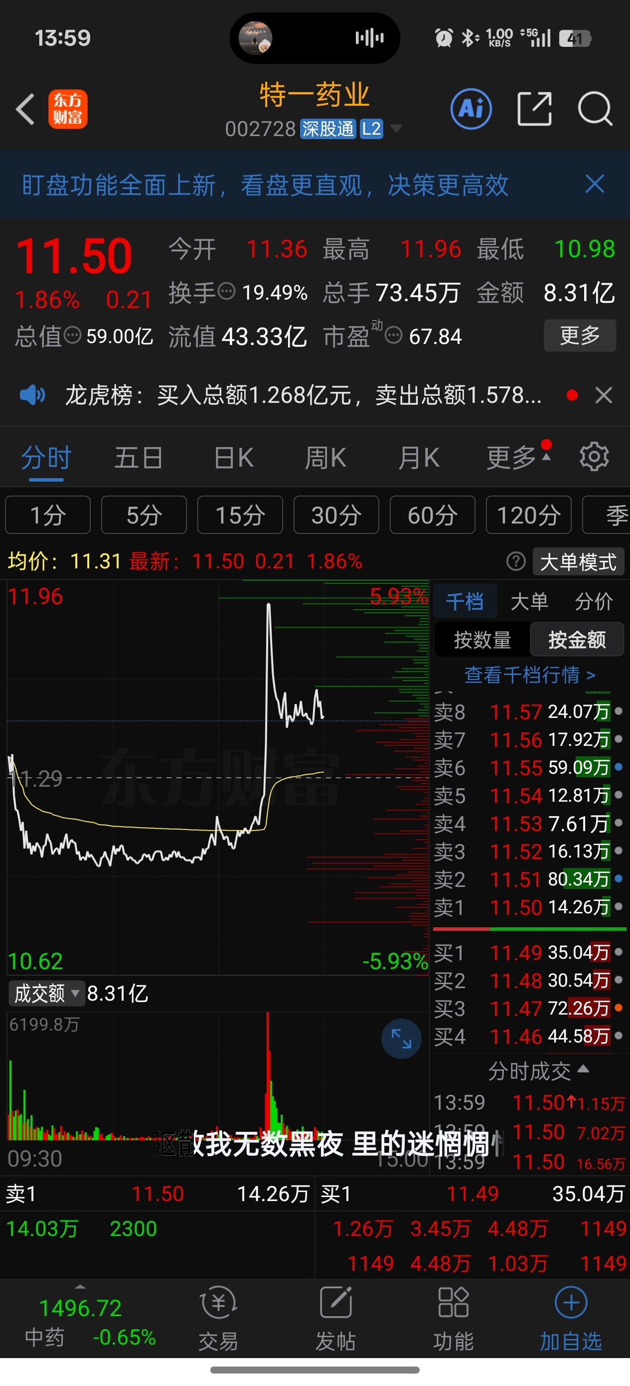 $特一药业(SZ002728)$ 成本线附近疯狂挑逗