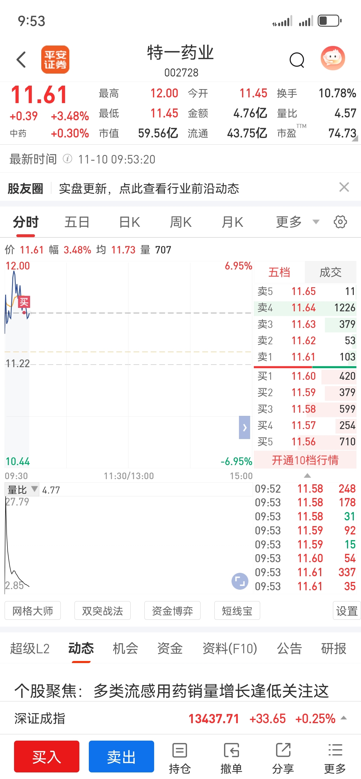 $特一药业(SZ002728)$ 12块套了人不少呢,着急解套离场