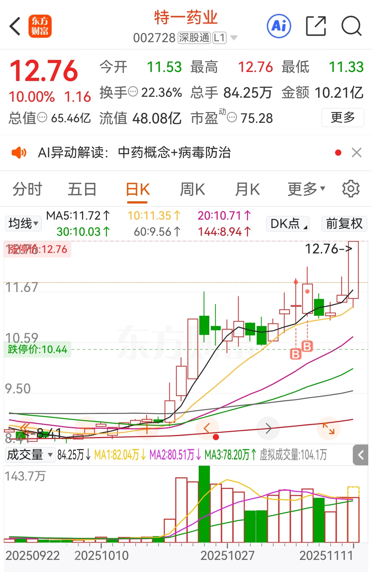 $特一药业(SZ002728)$ 拿了几天了,终于板了,这季节适合炒这板块。此股业绩又优秀。