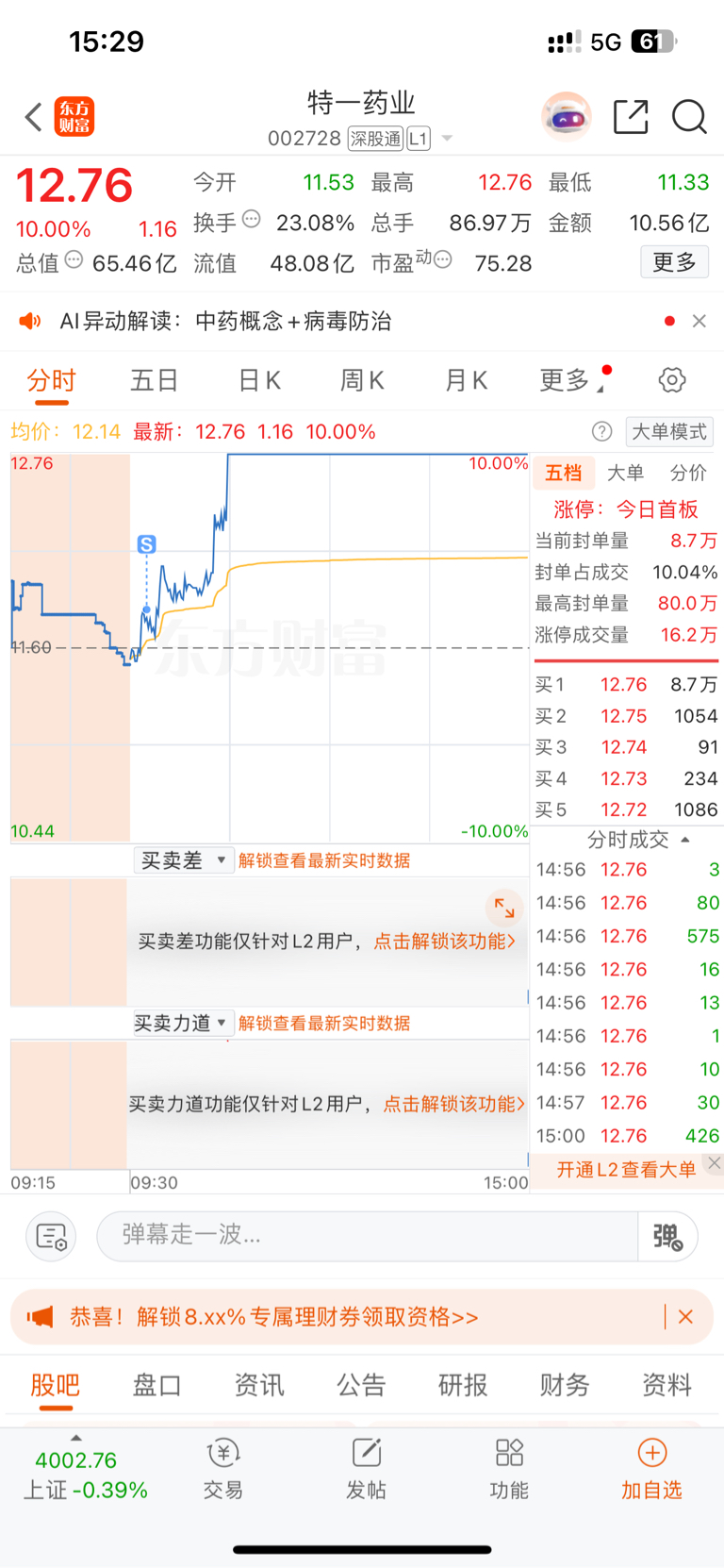 $特一药业(SZ002728)$ 卖出后上涨8个点
