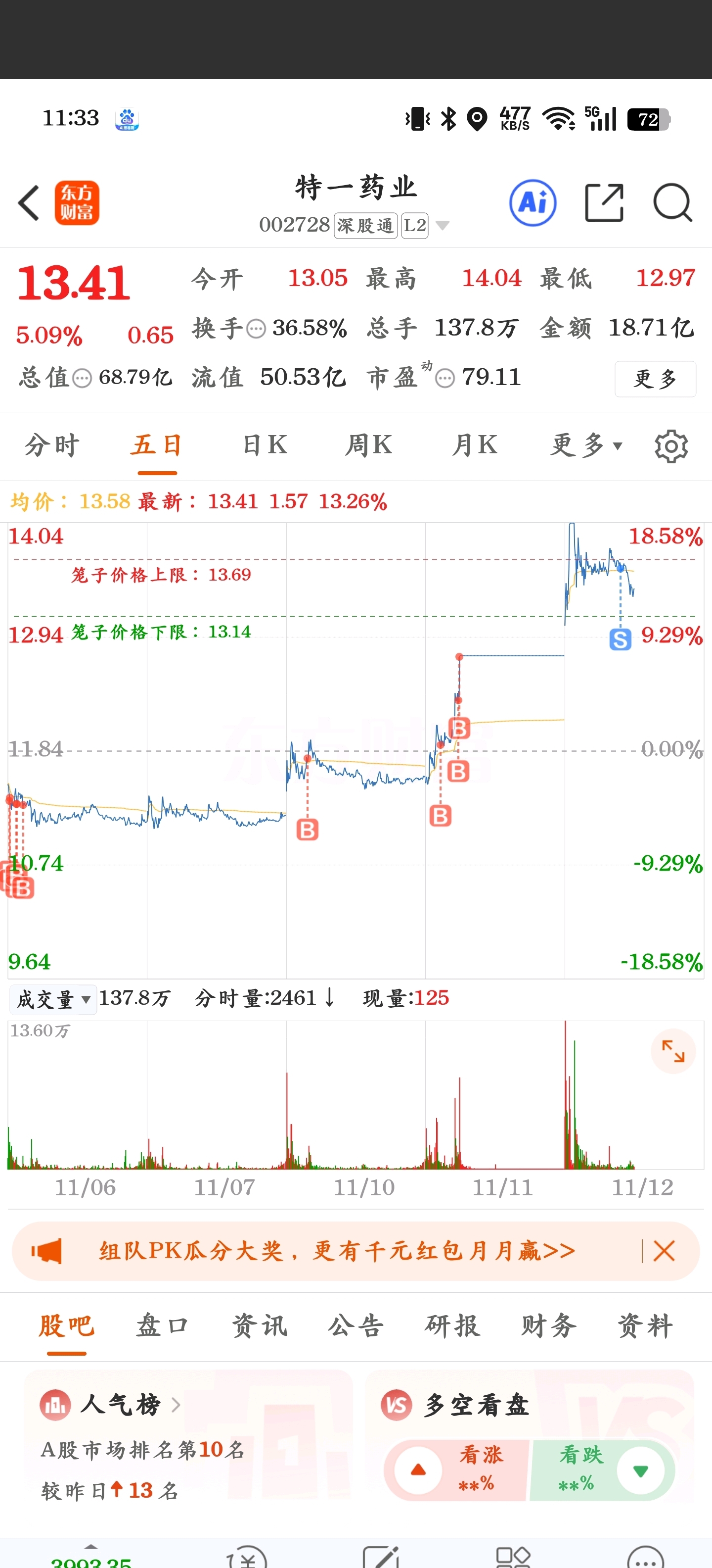 $特一药业(SZ002728)$ 君子不利于危墙之下,天量分歧止盈,感恩特一,后会有期