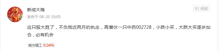 温馨提示: 1.根据《证券法》规定,禁止编造、传播虚假信息或者误导性信息,扰乱证券市场;2.用户在本社区发表的所有资料、言论等仅代表个人观点,与本网站立场无关,不对您构成任何投资建议。用户应基于自己的独立判断,自行决定证券投资并承担相应风险。《东方财富社区管理规定》