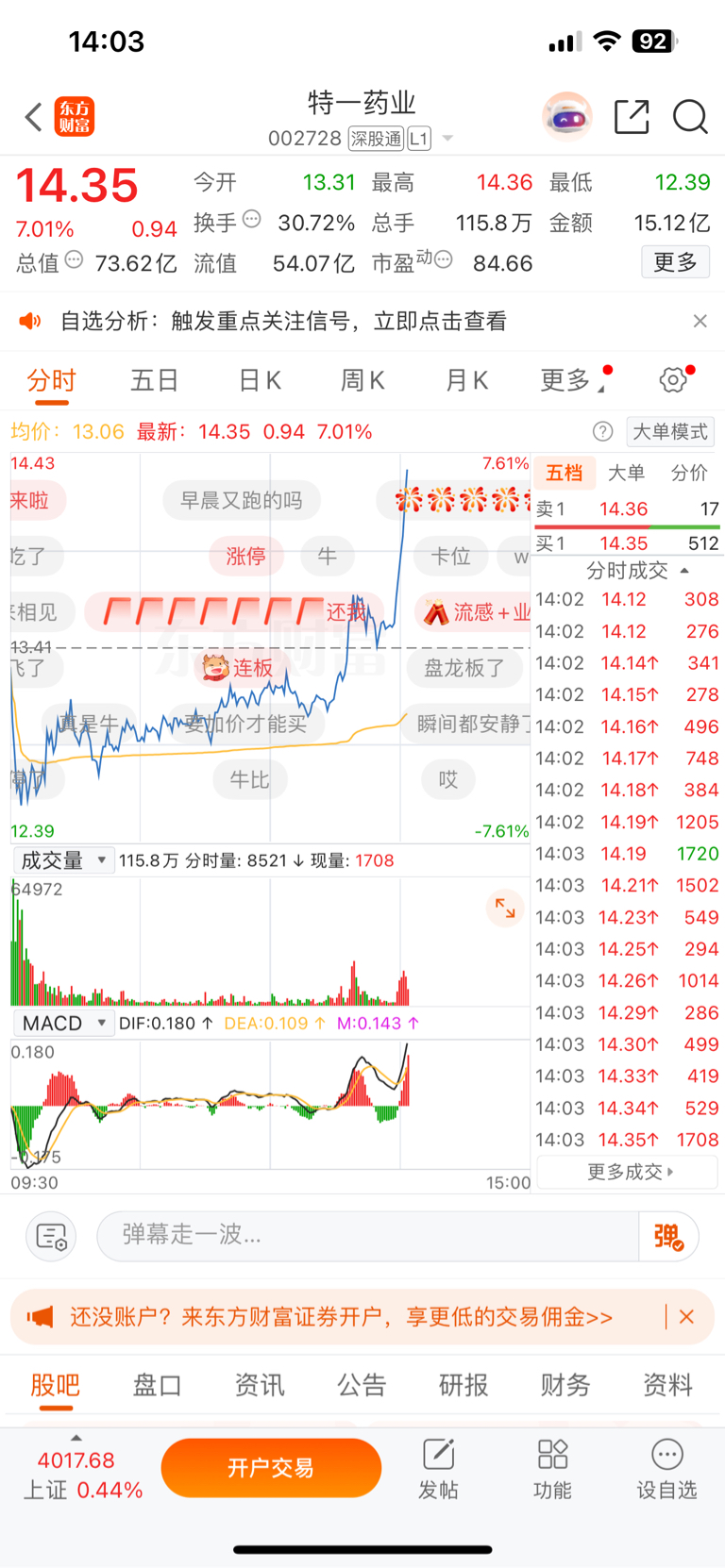 $特一药业(SZ002728)$ 8个点的时候会觉得能涨停,结果一去不复返!炒股真心累!