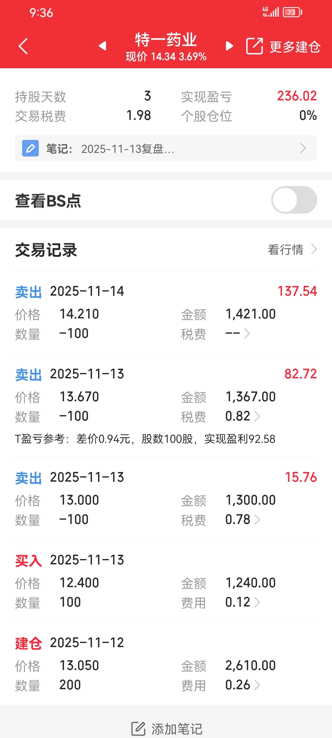 $特一药业(SZ002728)$ 挣235块走了