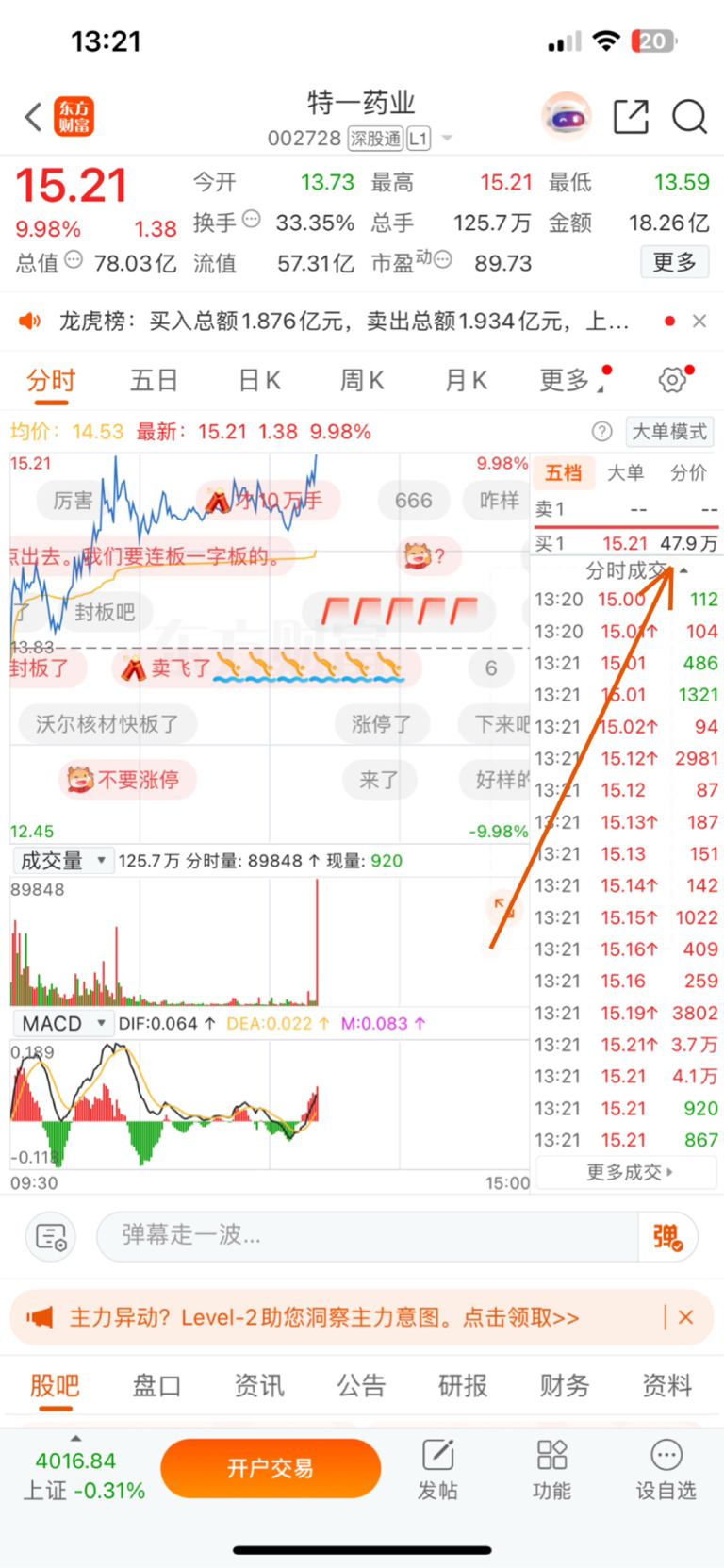 $特一药业(SZ002728)$ 周三也是47万封单,但没多久就撤单,周三收盘只涨3%!看看今天会不会像周三一样走势!