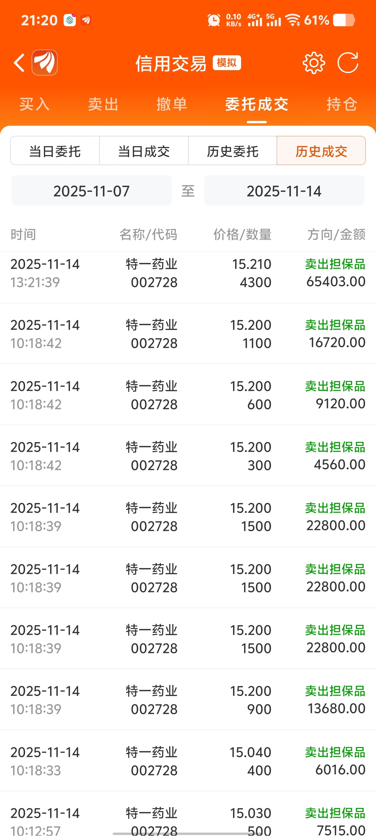 现在特一药业15.21元涨停板了,我减仓一点点了。哈哈,