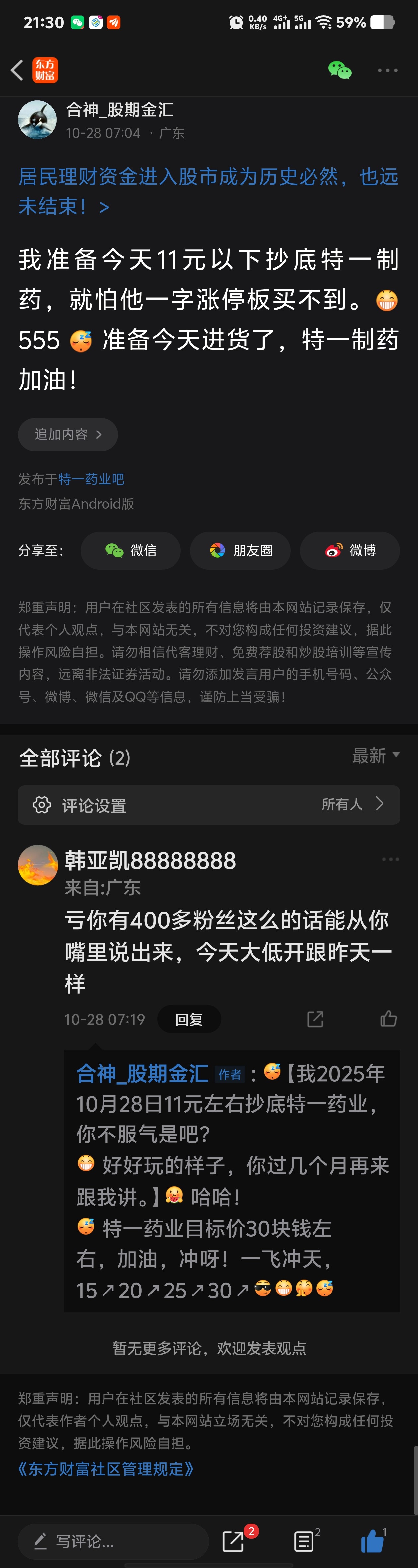 温馨提示: 1.根据《证券法》规定,禁止编造、传播虚假信息或者误导性信息,扰乱证券市场;2.用户在本社区发表的所有资料、言论等仅代表个人观点,与本网站立场无关,不对您构成任何投资建议。用户应基于自己的独立判断,自行决定证券投资并承担相应风险。《东方财富社区管理规定》