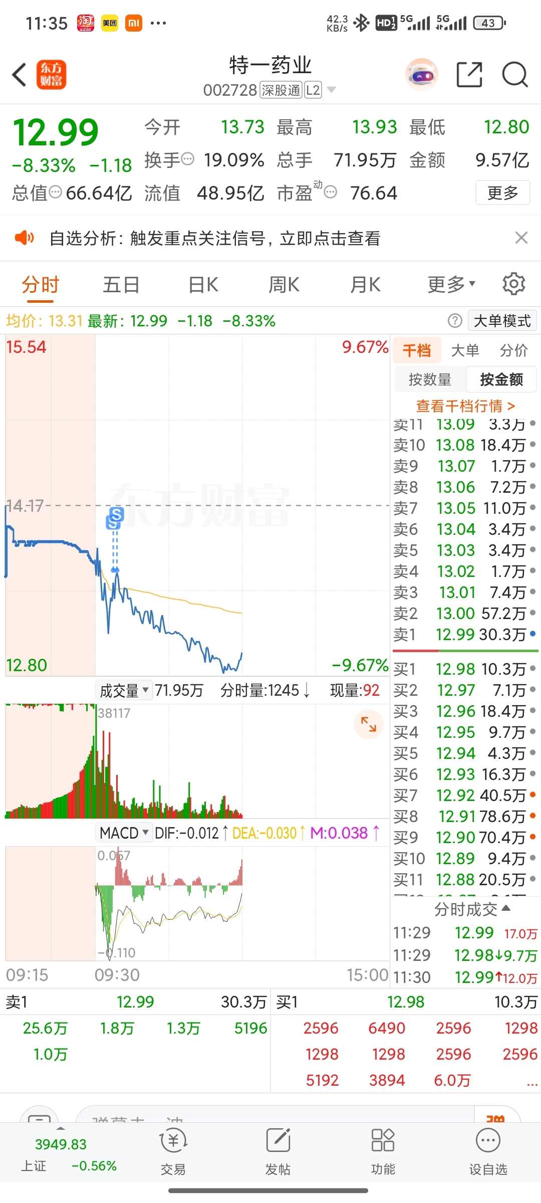 $特一药业(SZ002728)$ 今年最大的面,以后记得了