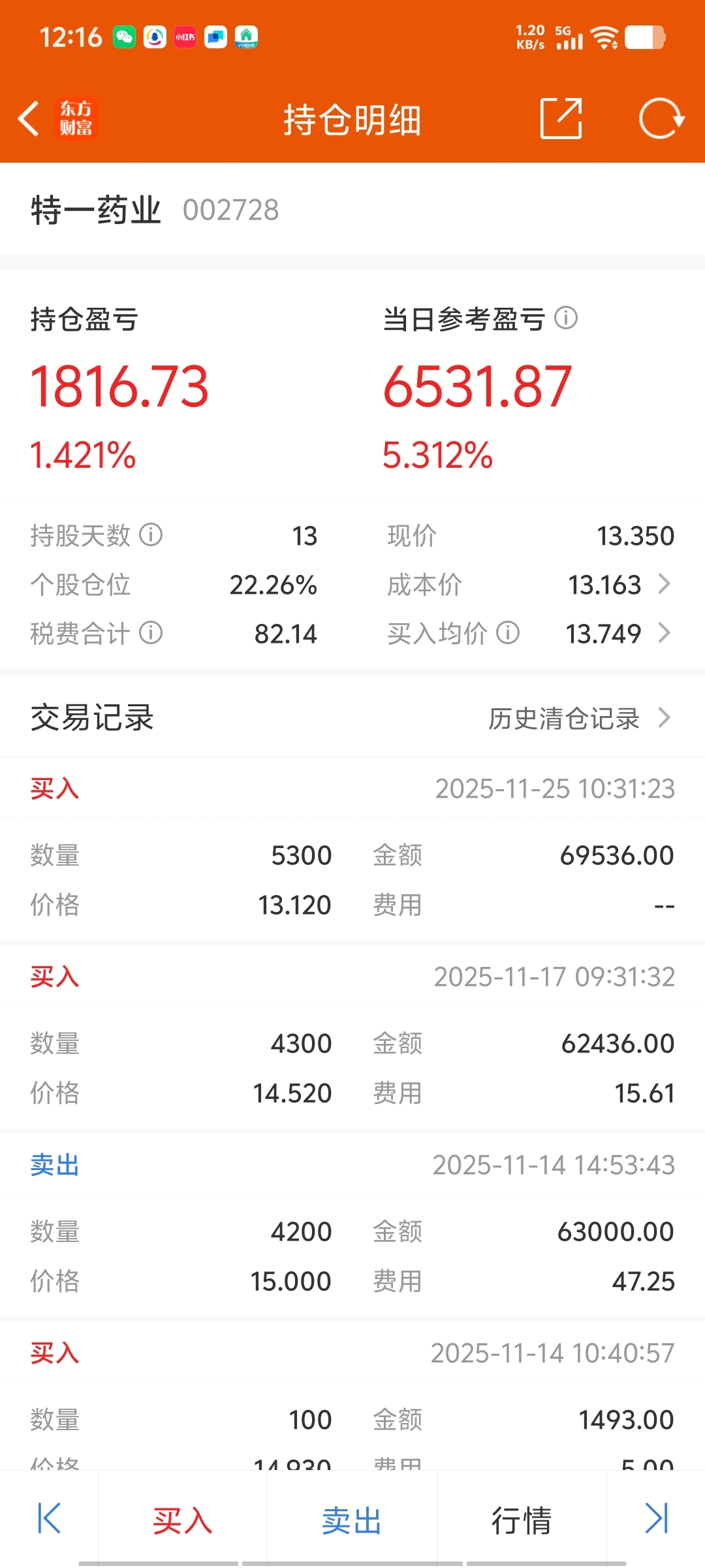 $特一药业(SZ002728)$ 看好它今天加仓加对了