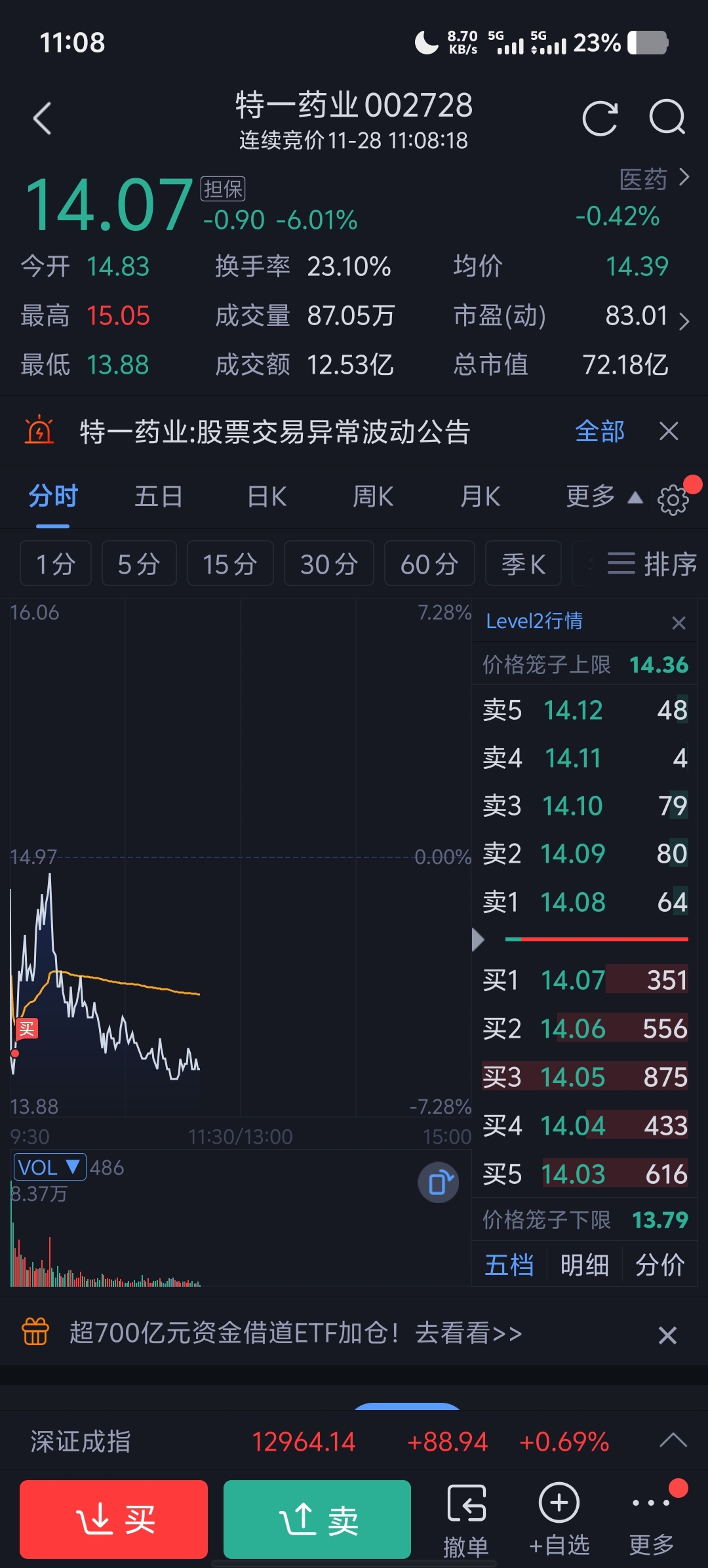 $特一药业(SZ002728)$ 下周一不会跌停吧