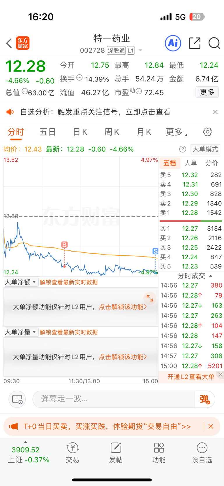 $特一药业(SZ002728)$ 连个T的机会都不给,这是要往死里整咯!
