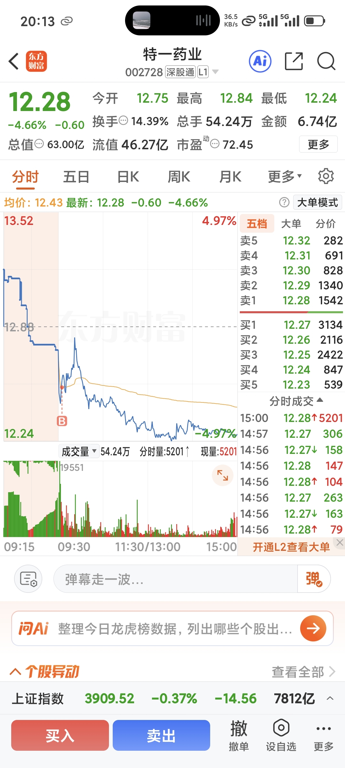 $特一药业(SZ002728)$ 想着进来避险,没想到进来上套了