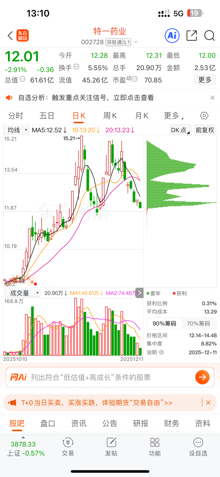 $特一药业(SZ002728)$ 扛不住了,亏1200多跑了