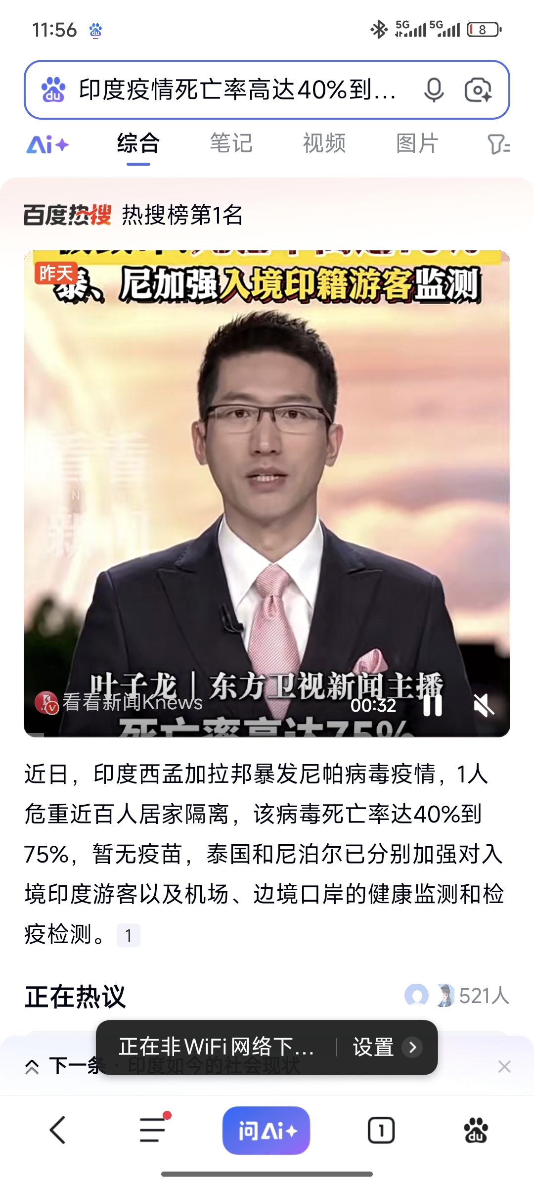 近日,印度西孟加拉邦暴发尼帕病毒疫情,1人危重近百人居家隔离,该病毒死亡率达40%到75%,泰国和尼泊尔已分别加强对入境印度游客以及机场、边境口岸的健康监测和检疫检测。