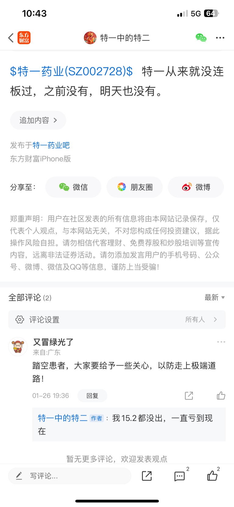 温馨提示: 1.根据《证券法》规定,禁止编造、传播虚假信息或者误导性信息,扰乱证券市场;2.用户在本社区发表的所有资料、言论等仅代表个人观点,与本网站立场无关,不对您构成任何投资建议。用户应基于自己的独立判断,自行决定证券投资并承担相应风险。《东方财富社区管理规定》