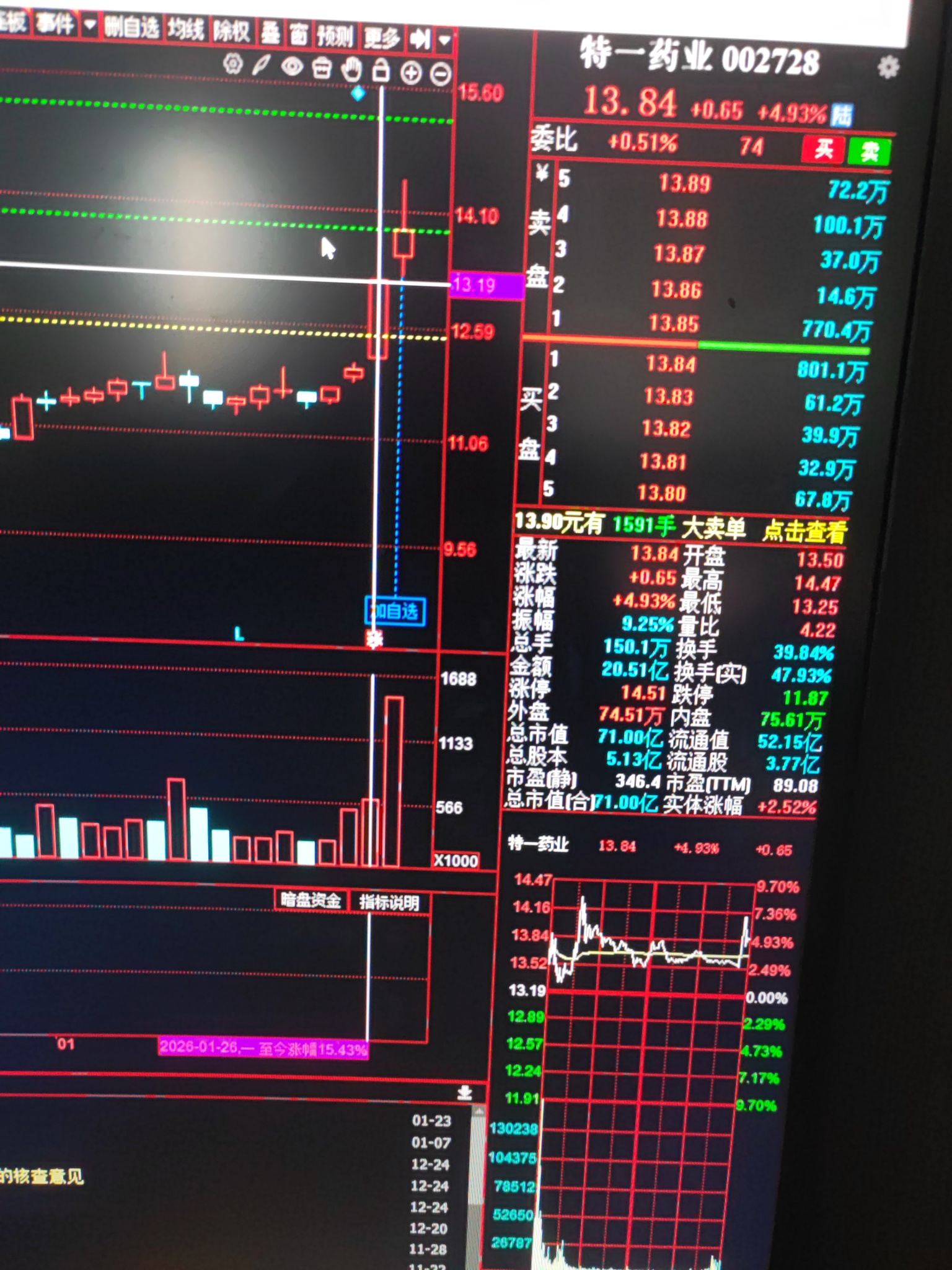 特一药业,明天若是开在13.19附近,可以直接参与。看实力,关注我。