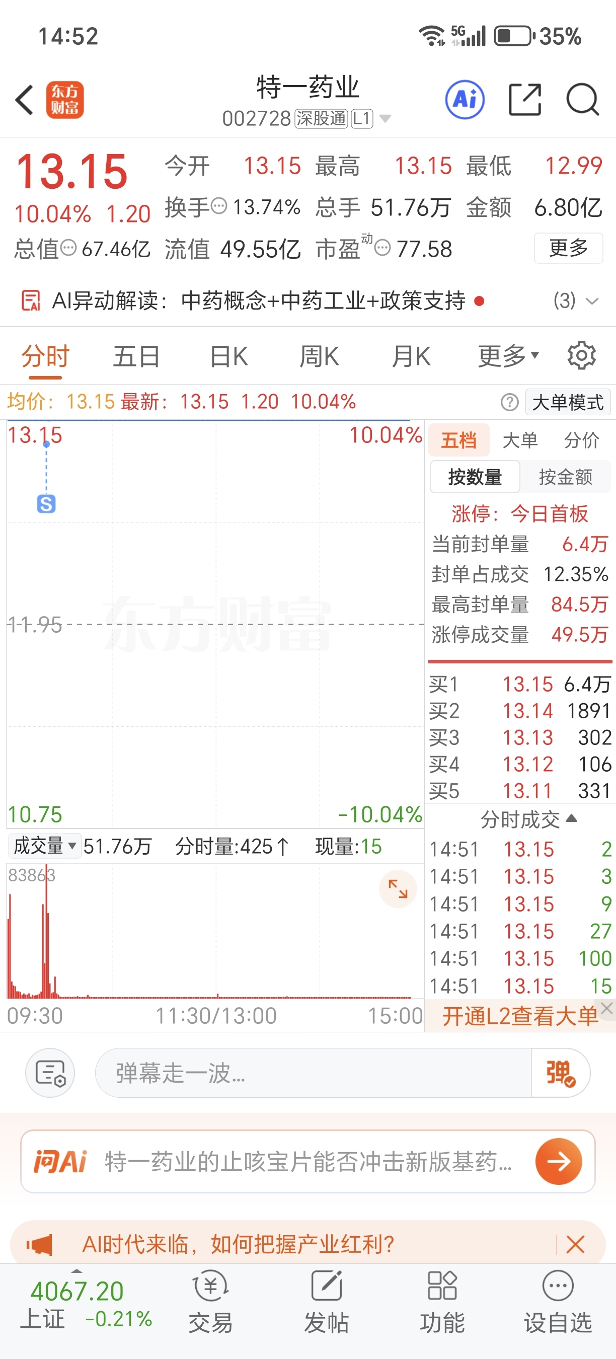 $特一药业(SZ002728)$ 唉,自作聪明了