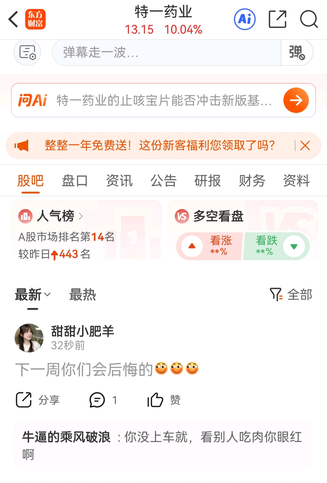 $特一药业(SZ002728)$ 我都说你们下周会跌倒扑街,你们就是执迷不悟