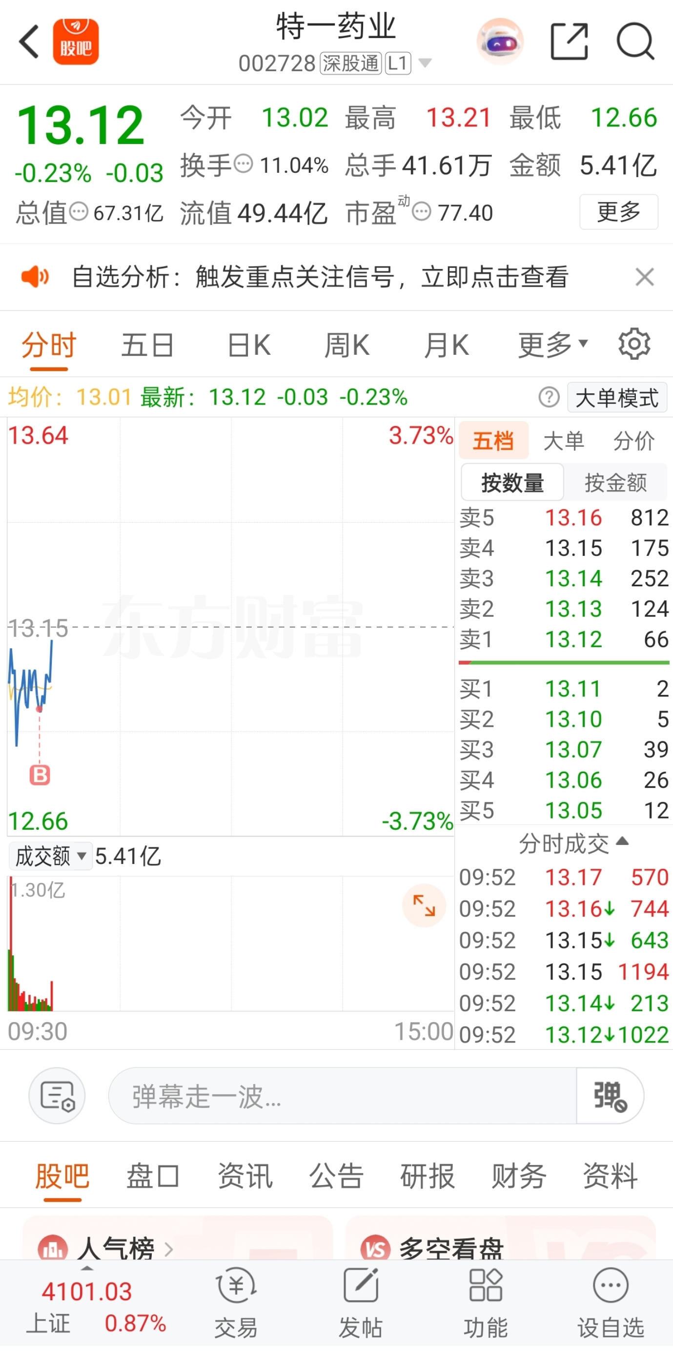 早盘选择水下低吸介入了$特一药业(SZ002728)$