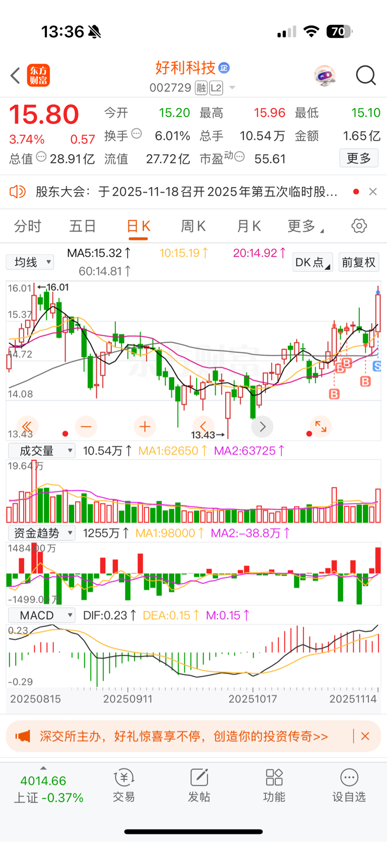 $好利科技(SZ002729)$ 会不会是在起飞前卖飞了